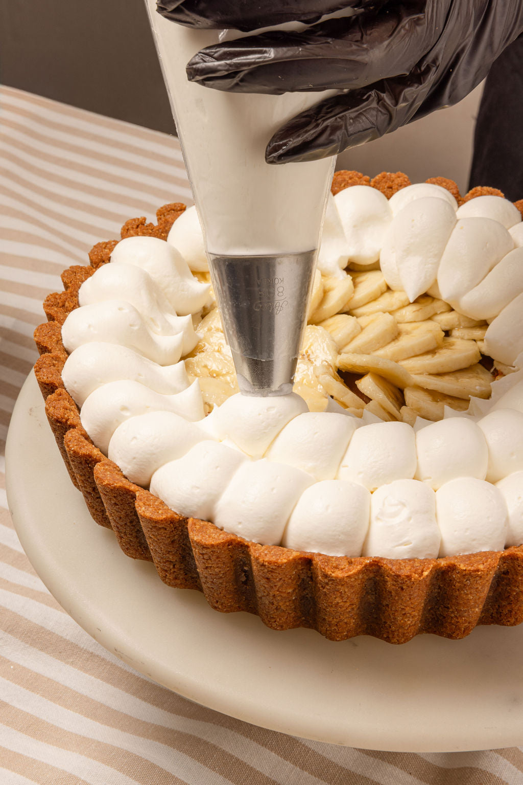 Crujiente de galleta lotus, dulce de leche, plátano y crema.